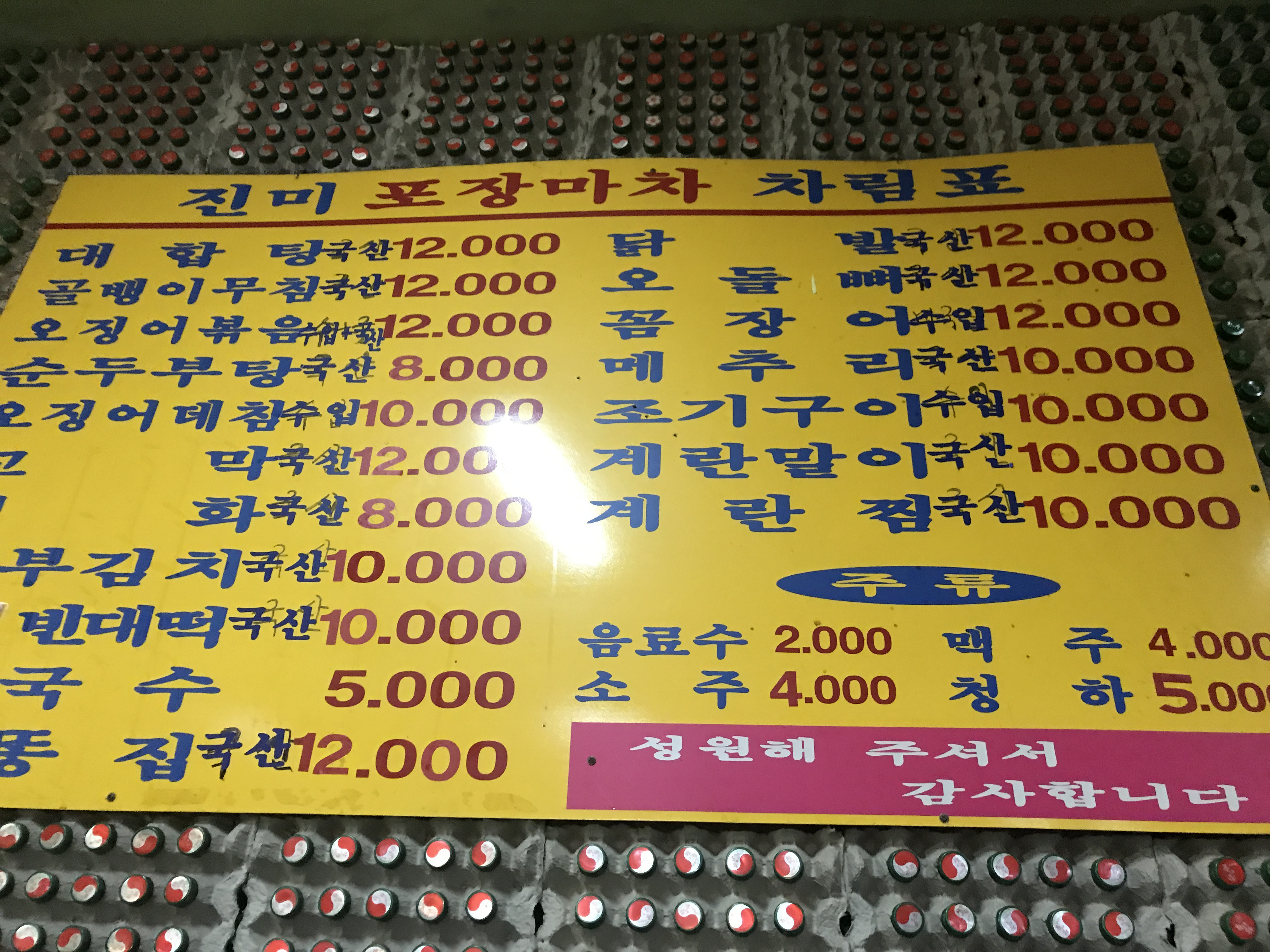 메뉴도 안 붙어있고 가격은 더더욱 알 수 없는