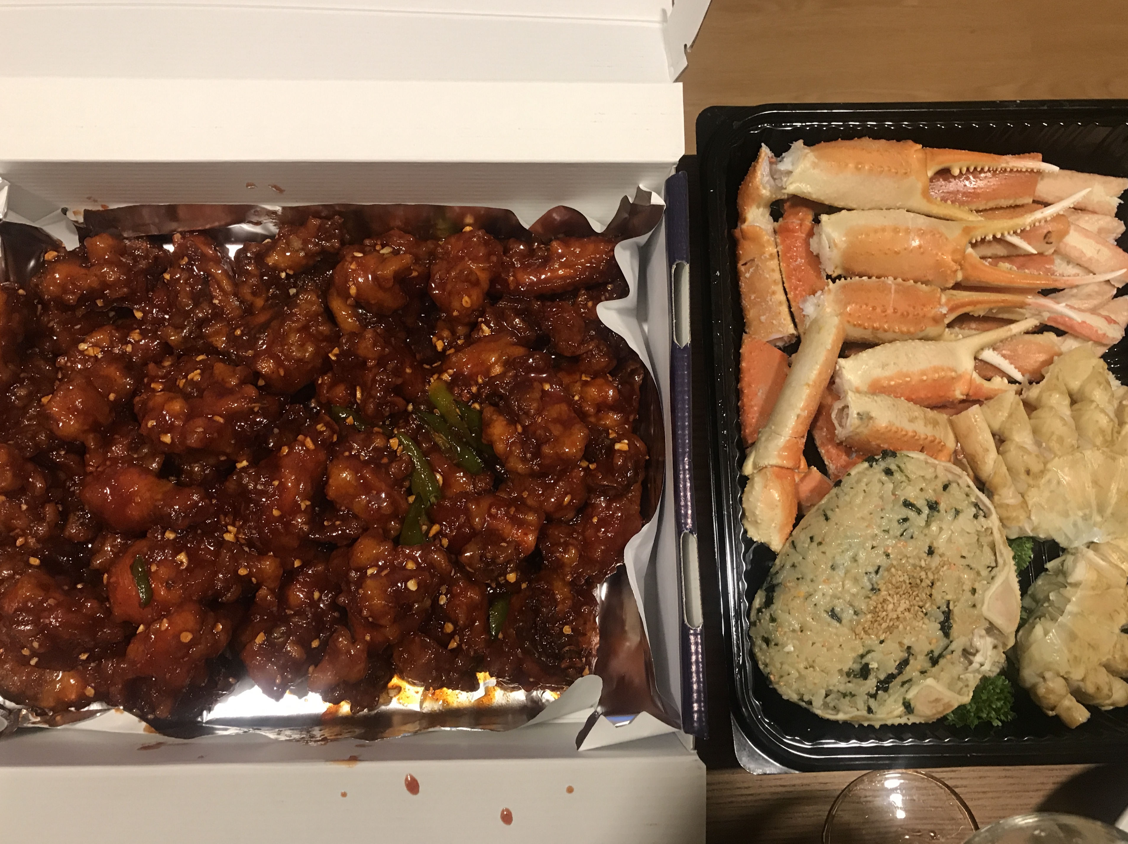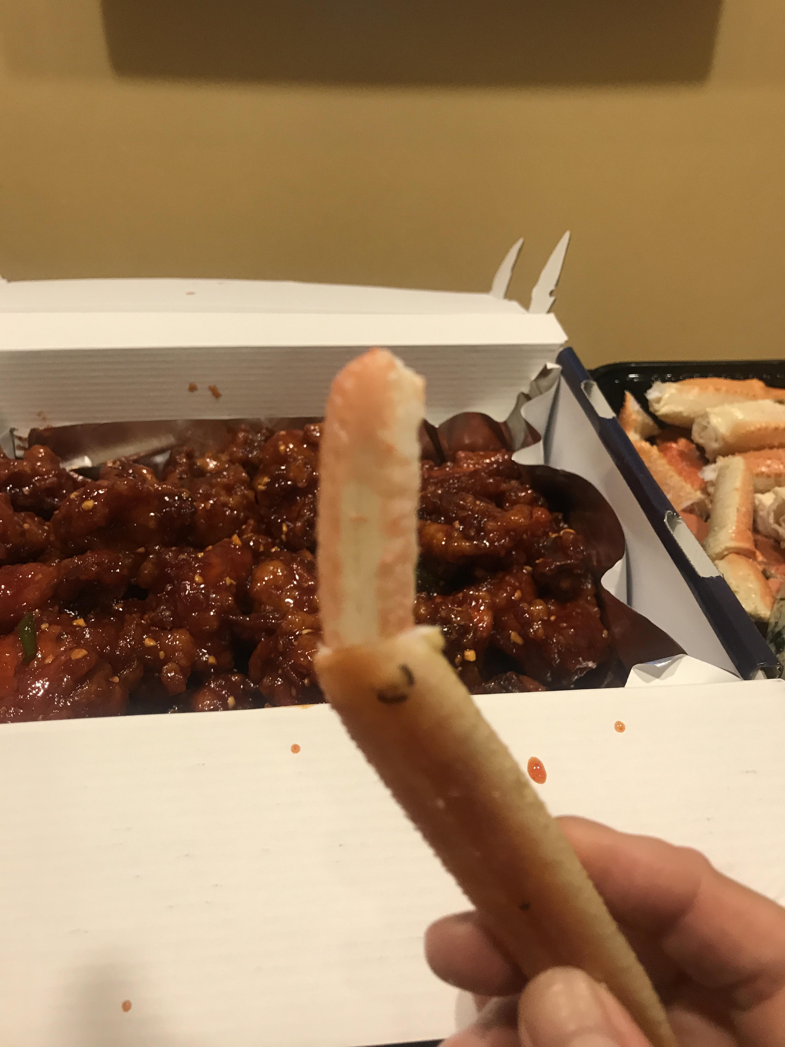 달달한 게살에 매콤한 닭강정을 곁들이니