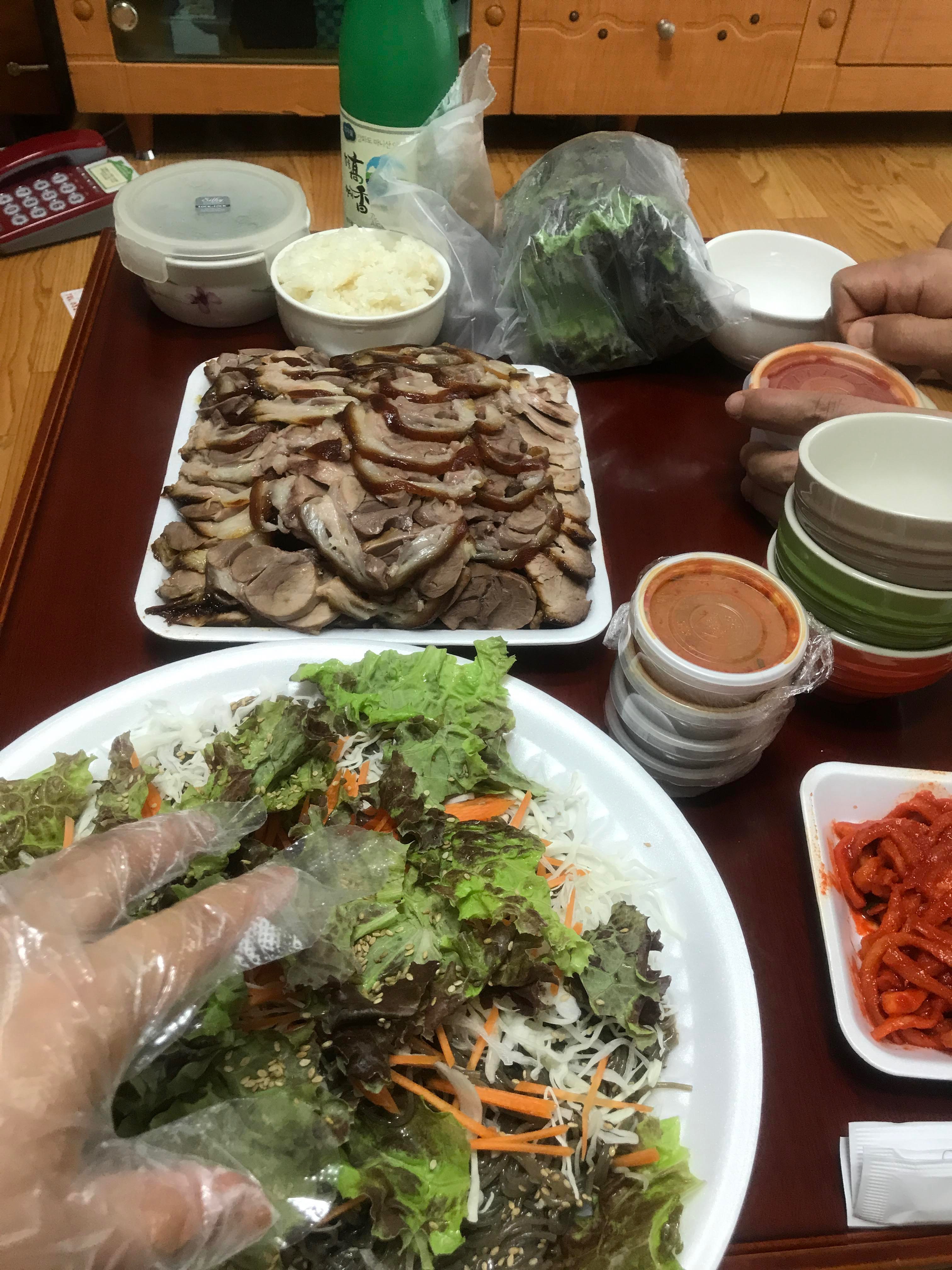 전화 한통과 함께 번개같이 달려오는 고기와 국수!