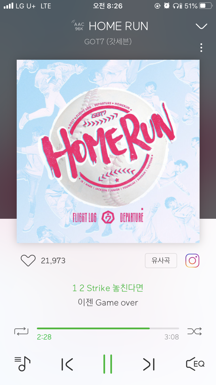 홈런 치고 펄쩍 뛰는 안무를 꼭 보아주시길. (0:55)