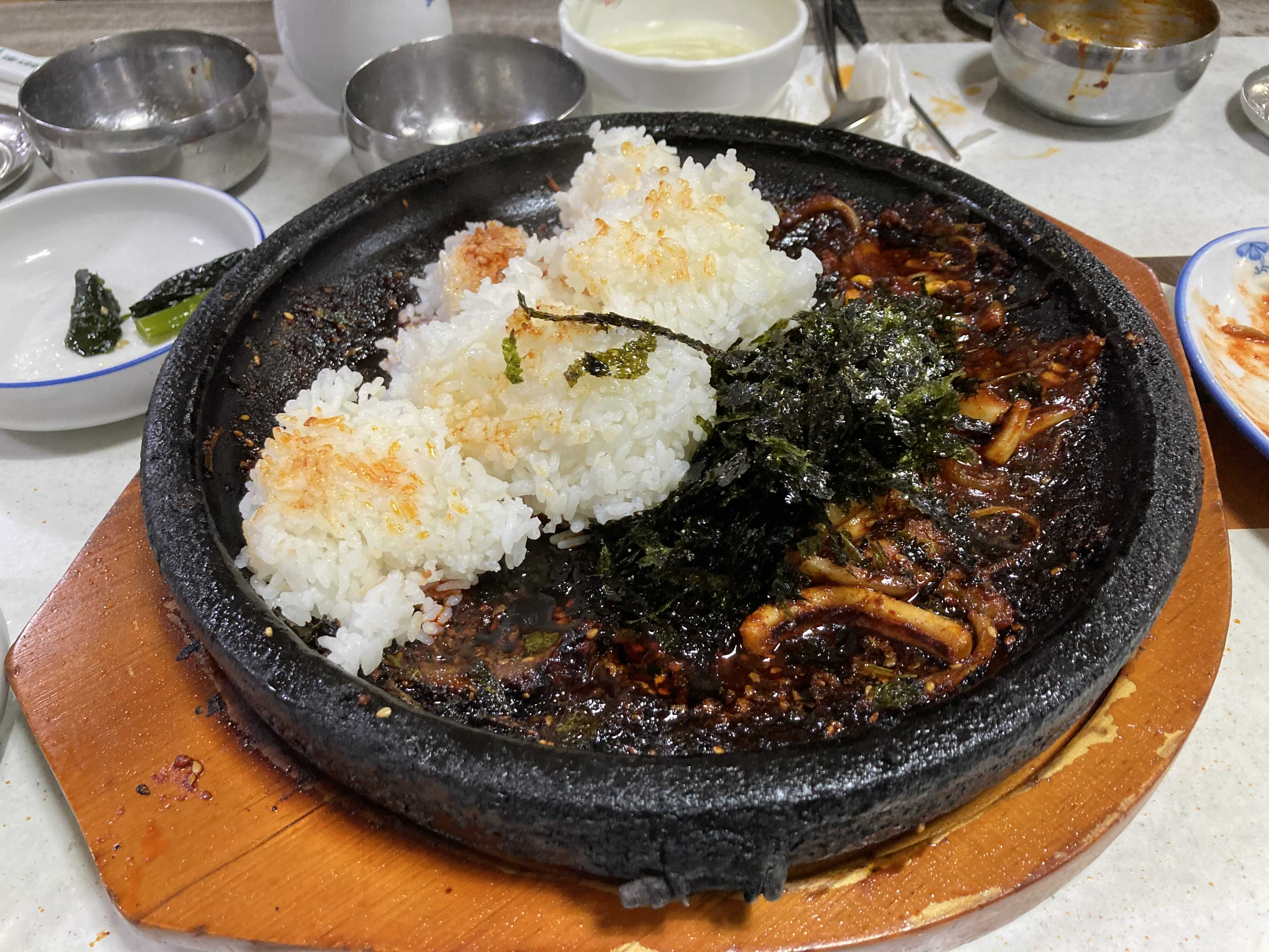 오징어는 다 먹고 없는데 왜 자꾸 밥을 추가하는가.