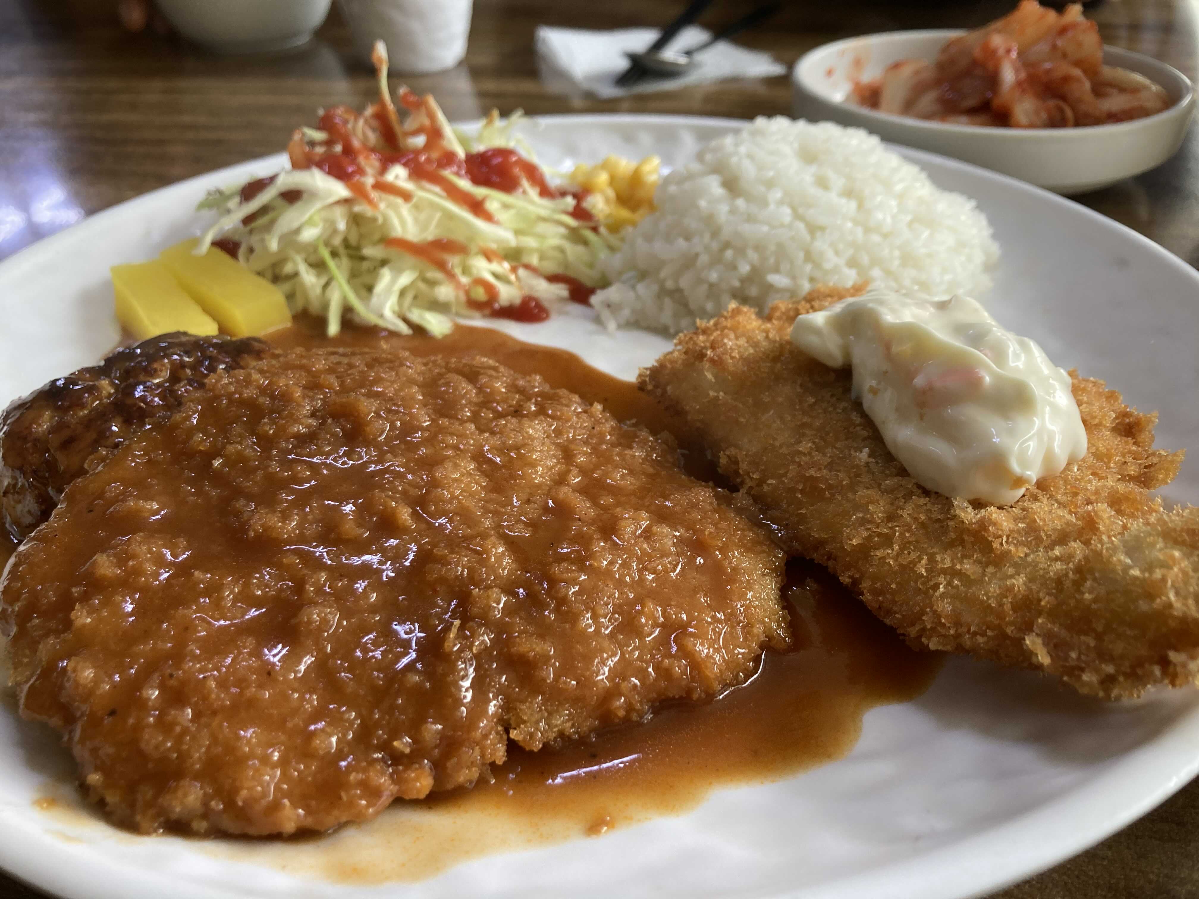응. 돈까스로 유명한 집인데 제육도 같이..