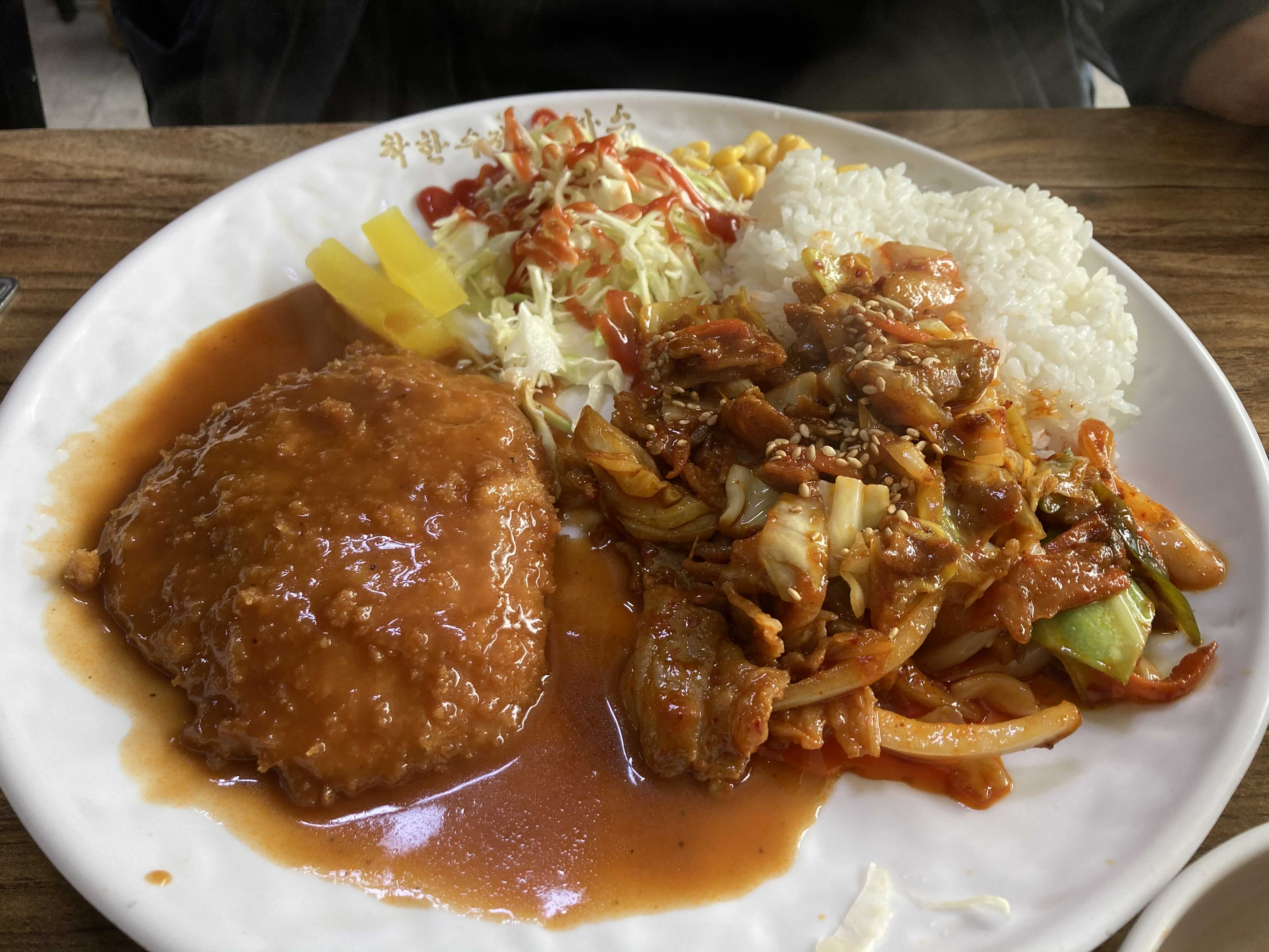 응. 돈까스로 유명한 집인데 제육도 같이..