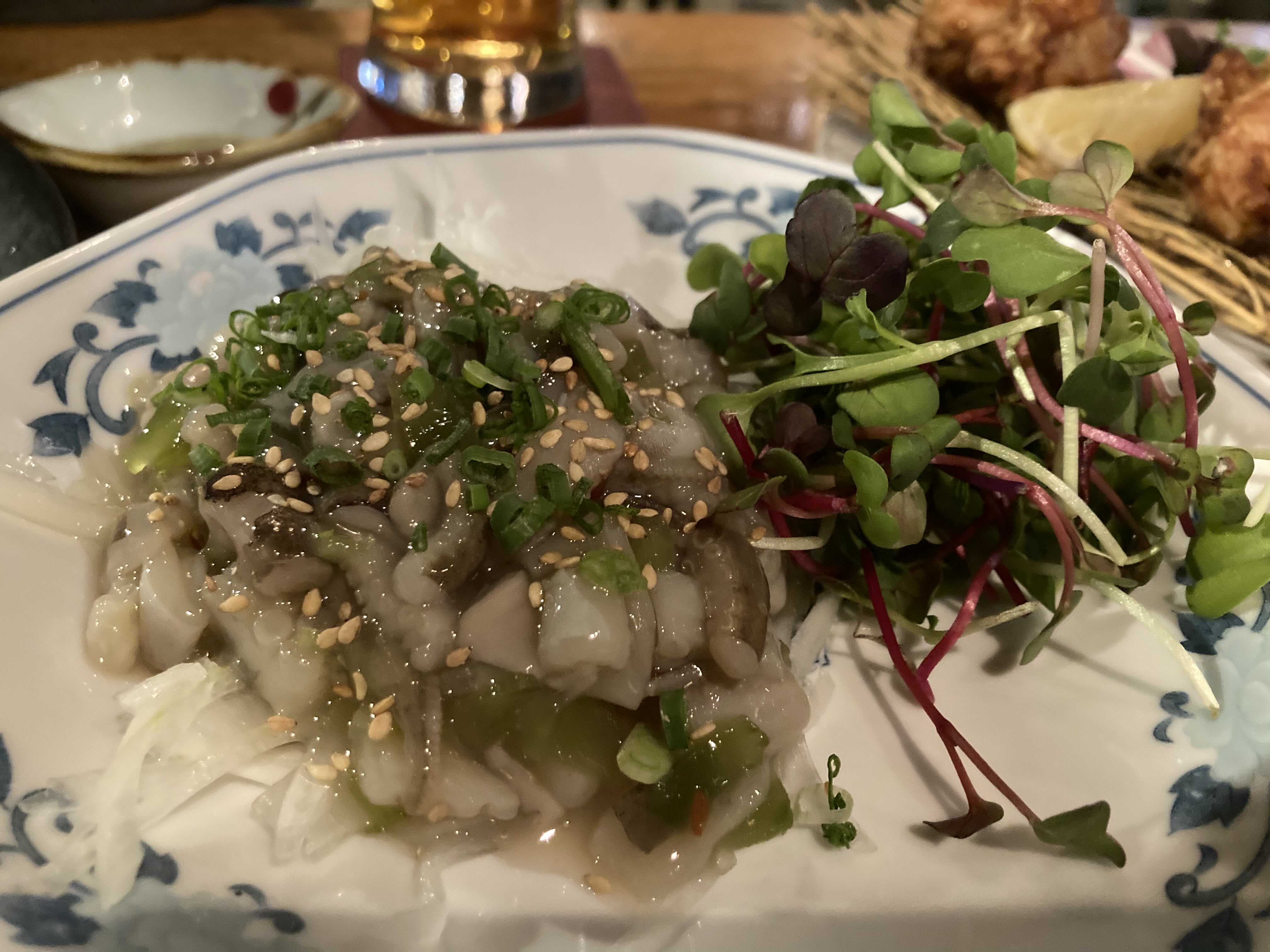 참깨 드레싱과 다진 우메보시를 곁들여먹는,