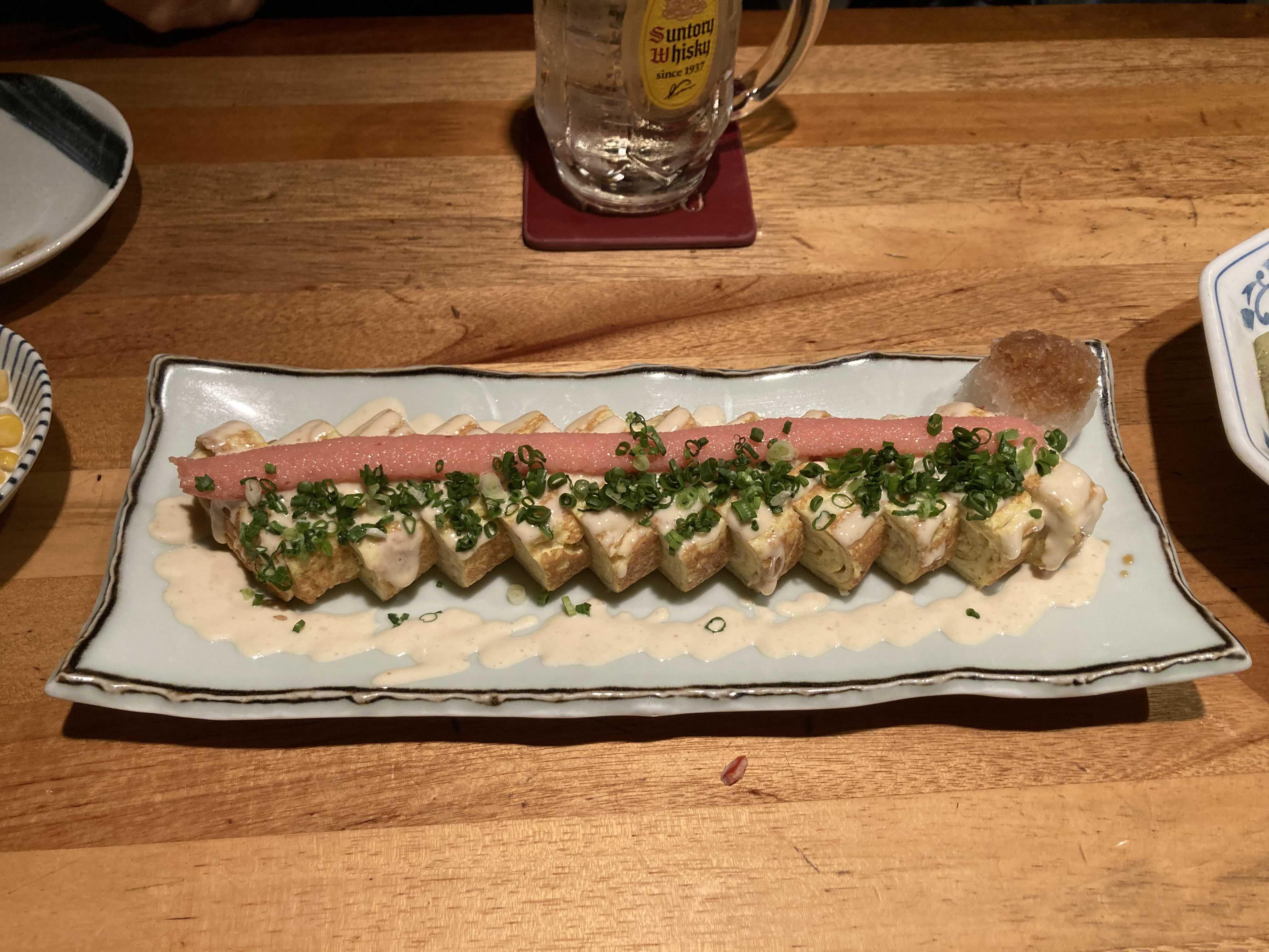 이곳은 특이하게 완성된 계란말이 위에 마요네즈처럼 쭈욱 짜서 올려준다.