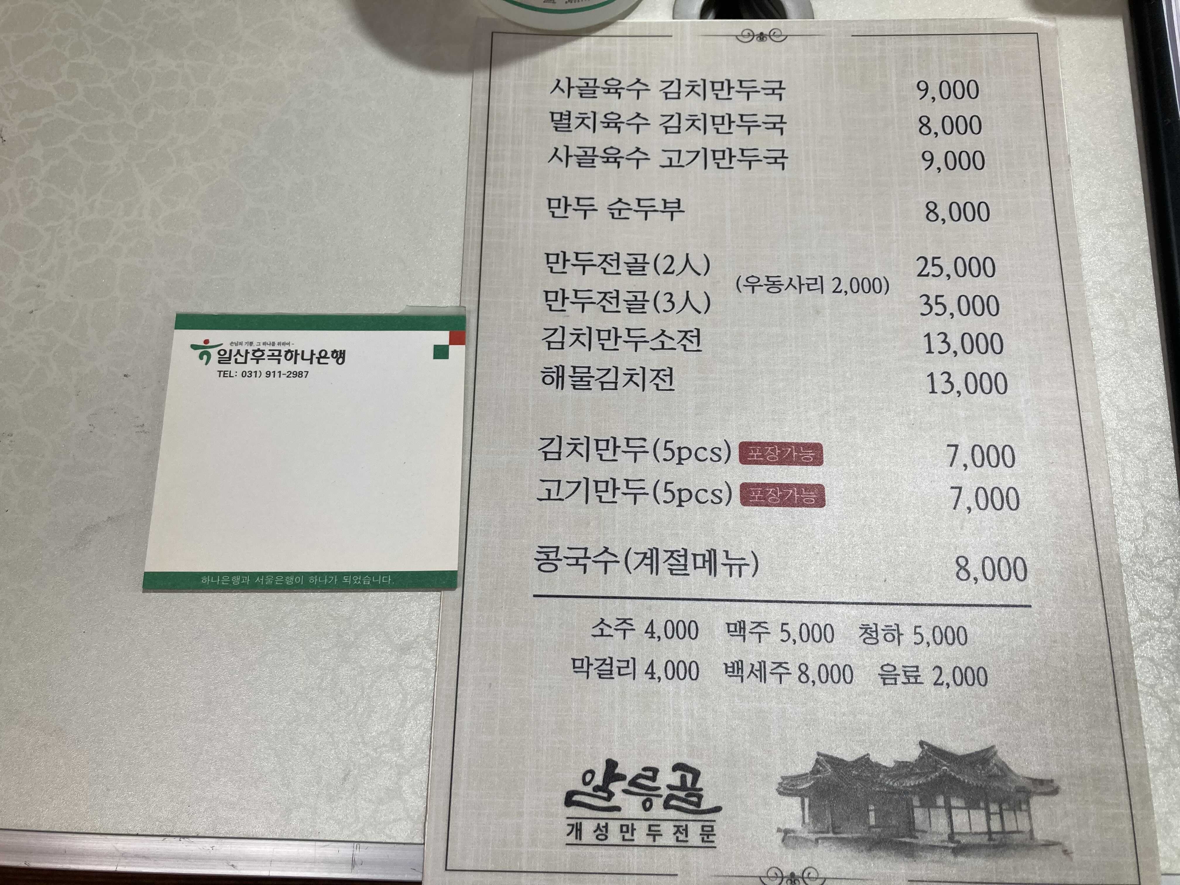 따라서 메뉴판에는 없지만 멸치육수 + 고기만두 조합도 가능하다.