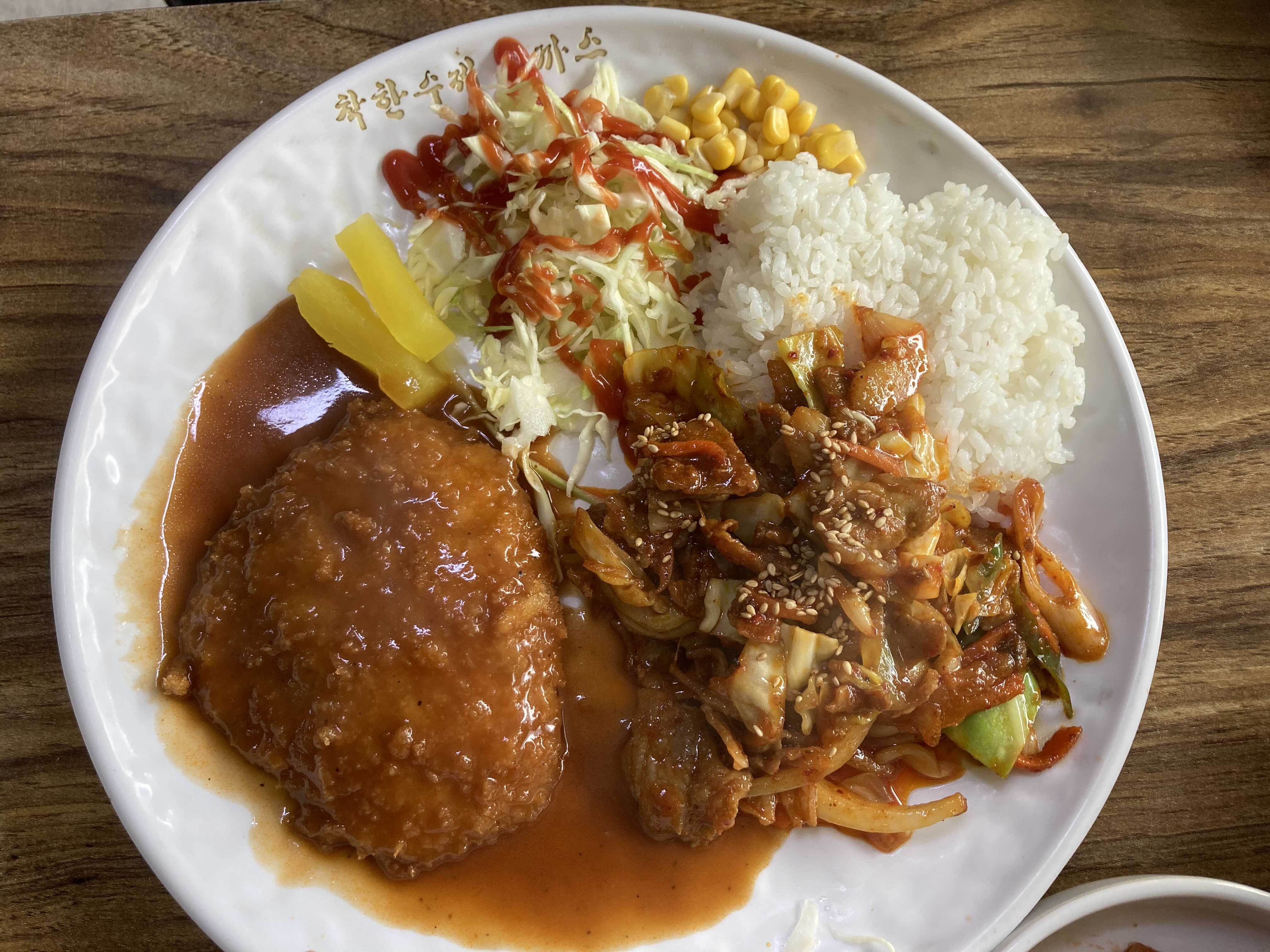 응. 돈까스로 유명한 집인데 제육도 같이..