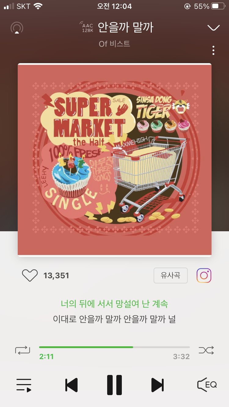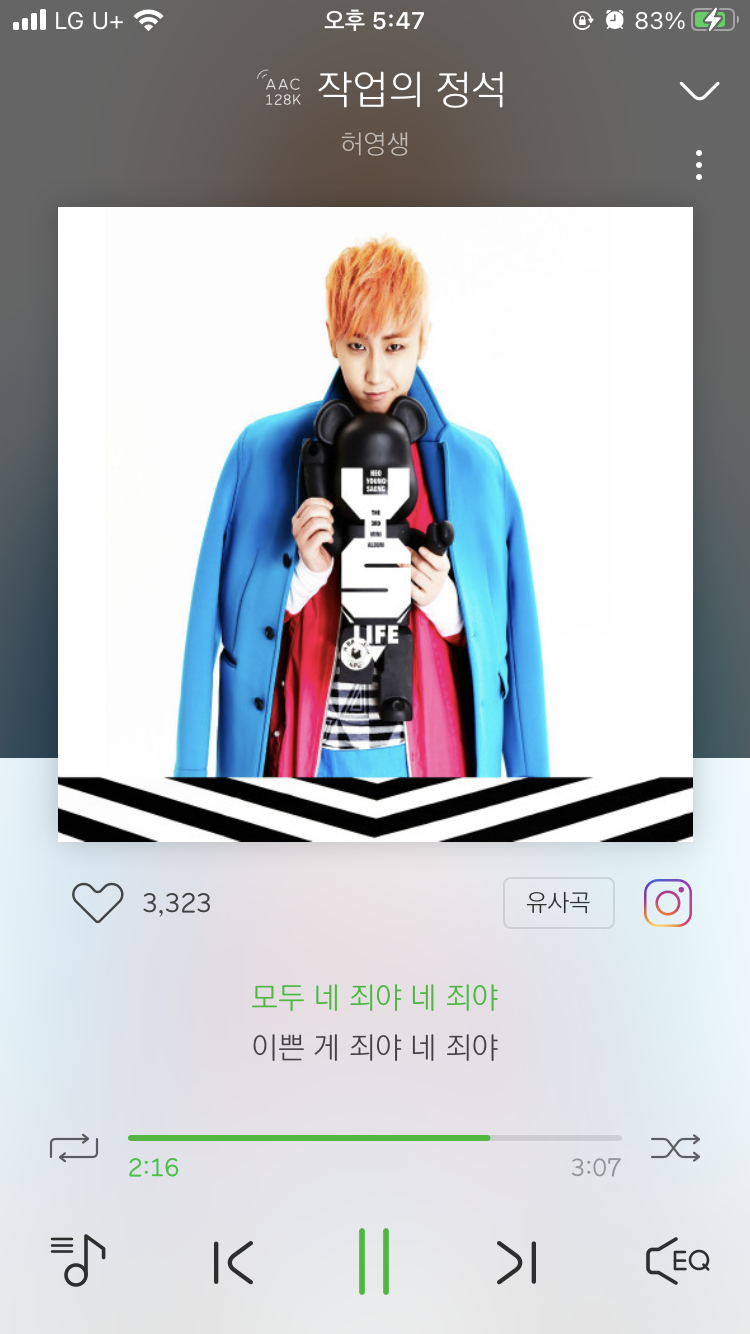 터지는 것과는 별개로 노래는 계속 듣고 있으나