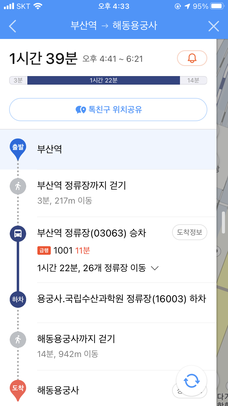 두 시간 반만에 부산이라니요. 오마니!
